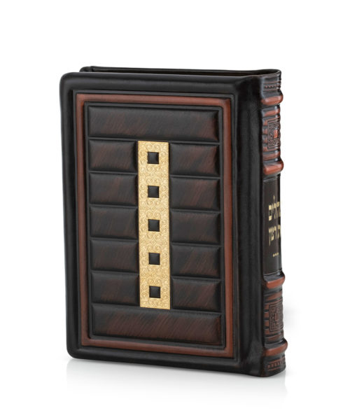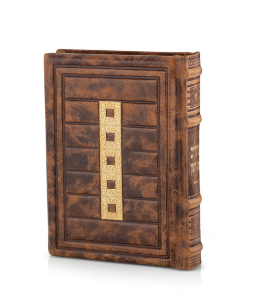 Cube style Tehillim with a spectacular gold plaque made of handmade genuine leather.